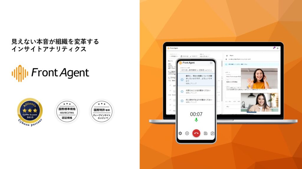 Front Agentは、会話を録音するだけで、顧客の見えない本音を可視化し、組織を変革するインサイトアナリシス™です。